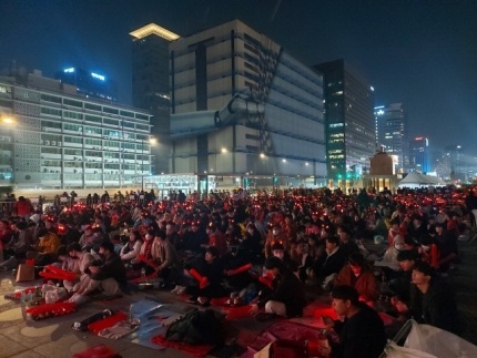 광화문광장 정중앙에 설치된 주무대와 대형 스크린 앞에는 이른 저녁부터 시민들이 집결하기 시작했다.