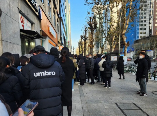 16일 오전 서울 서초동 강남역 인근에 첫 재개장한 파파이스 1호점. 이날 서울은 아침 최저 -11도를 찍고, 낮 최고기온도 -2도 밖에 안될 것으로 예상된 한파 와중임에도 파파이스 매장 앞에는 장사진이 이뤄졌다.